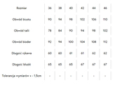| Rozmiar | 36 | 38 | 40 | 42 | 44 | 46 |